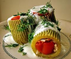 Dolma de calabacín ("kabak"),  pueden ser rellenas no sólo con arroz y especias, sino que también con mezcla de arroz y carne. Suele servirse con yogurt.